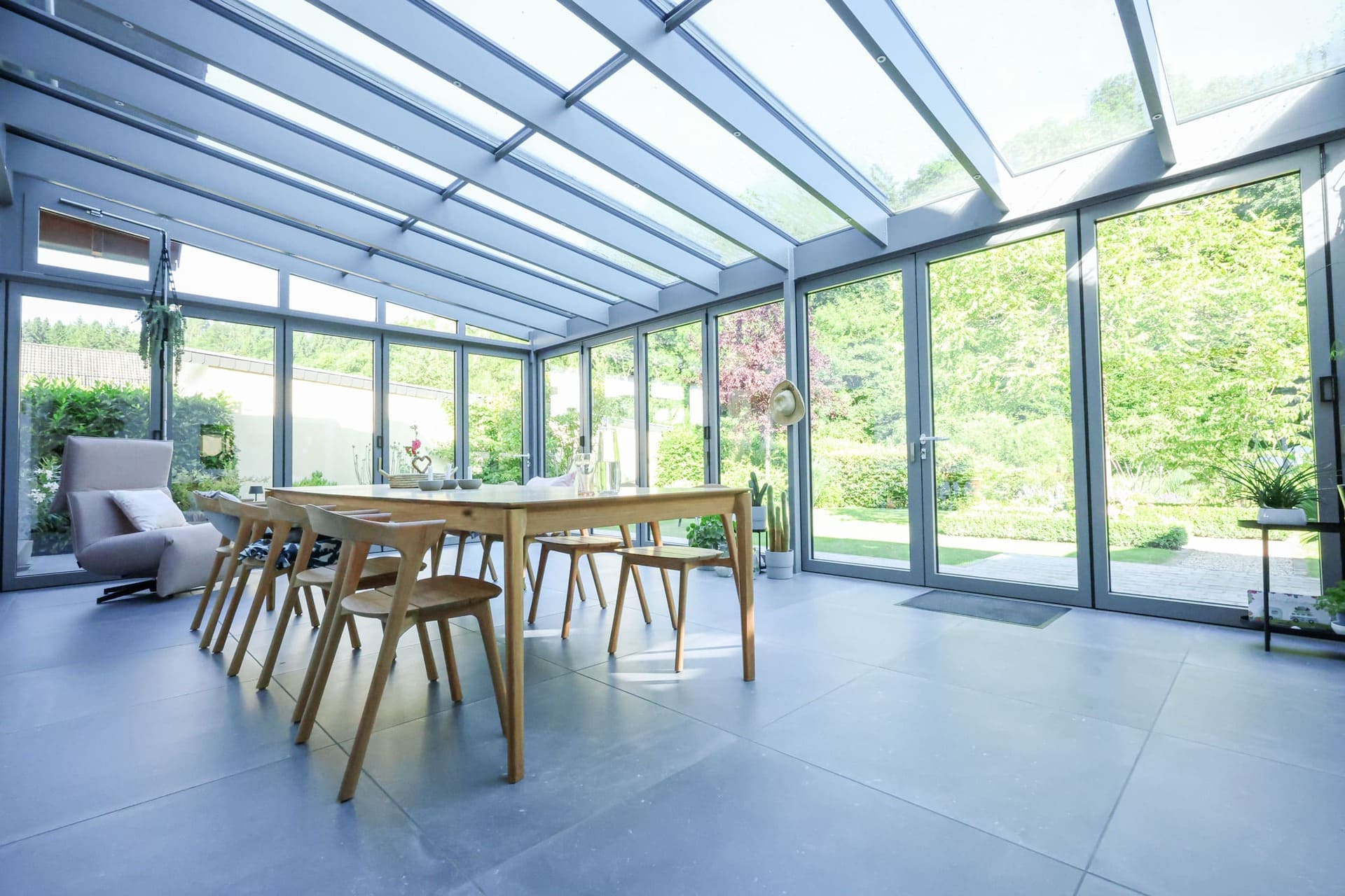 Hochwertige Aluminiumkonstruktionen und verschiedene Glas- oder Polycarbonatvarianten sorgen für Lichtdurchlässigkeit und Schutz zugleich – langlebig, pflegeleicht und elegant.